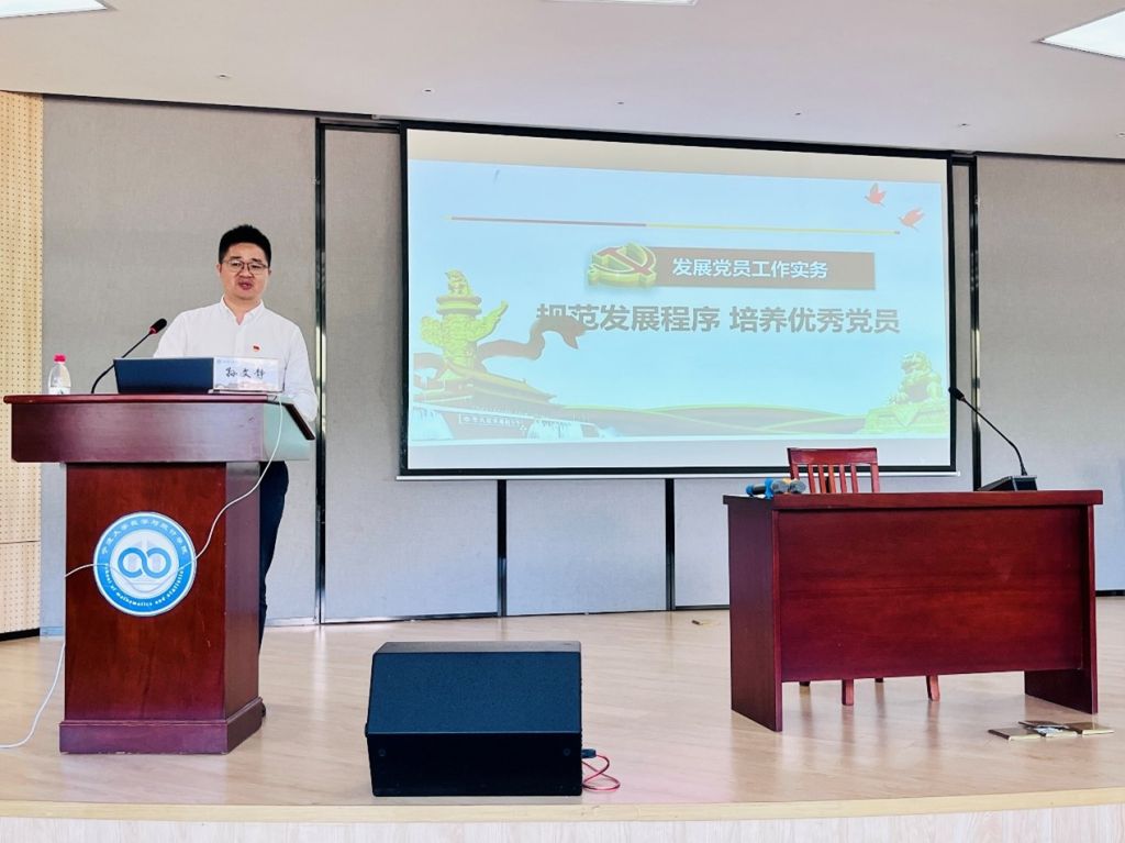 人文学院副书记孙文静受邀作题为《规范发展程序 培养优秀党员》的专题辅导报告。孙老师从5个阶段25个步骤详细阐释了发展党员的流程,结合自己的实际工作经历列举了党员发展各个环节中容易忽略或出错的问题,强调了其中的重要细节及注意事项。同时,孙老师指出,发展党员流程规范的同时更重要的还是要看入党初心和动机,这个才是党员队伍高质量建设的基础。