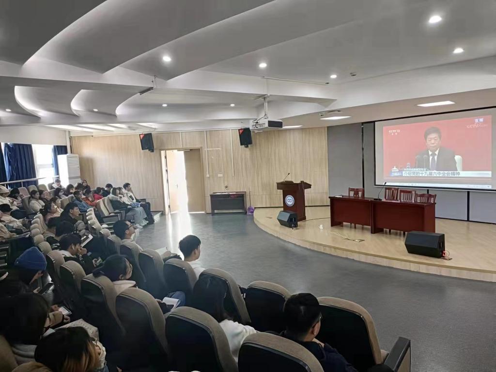 1112日上午10时,中共中央就党的十九届六中全会精神举行新闻发布会。51吃瓜 师生准时在包玉书9号楼113报告厅组织集中观看直播,学习全会的精神。
