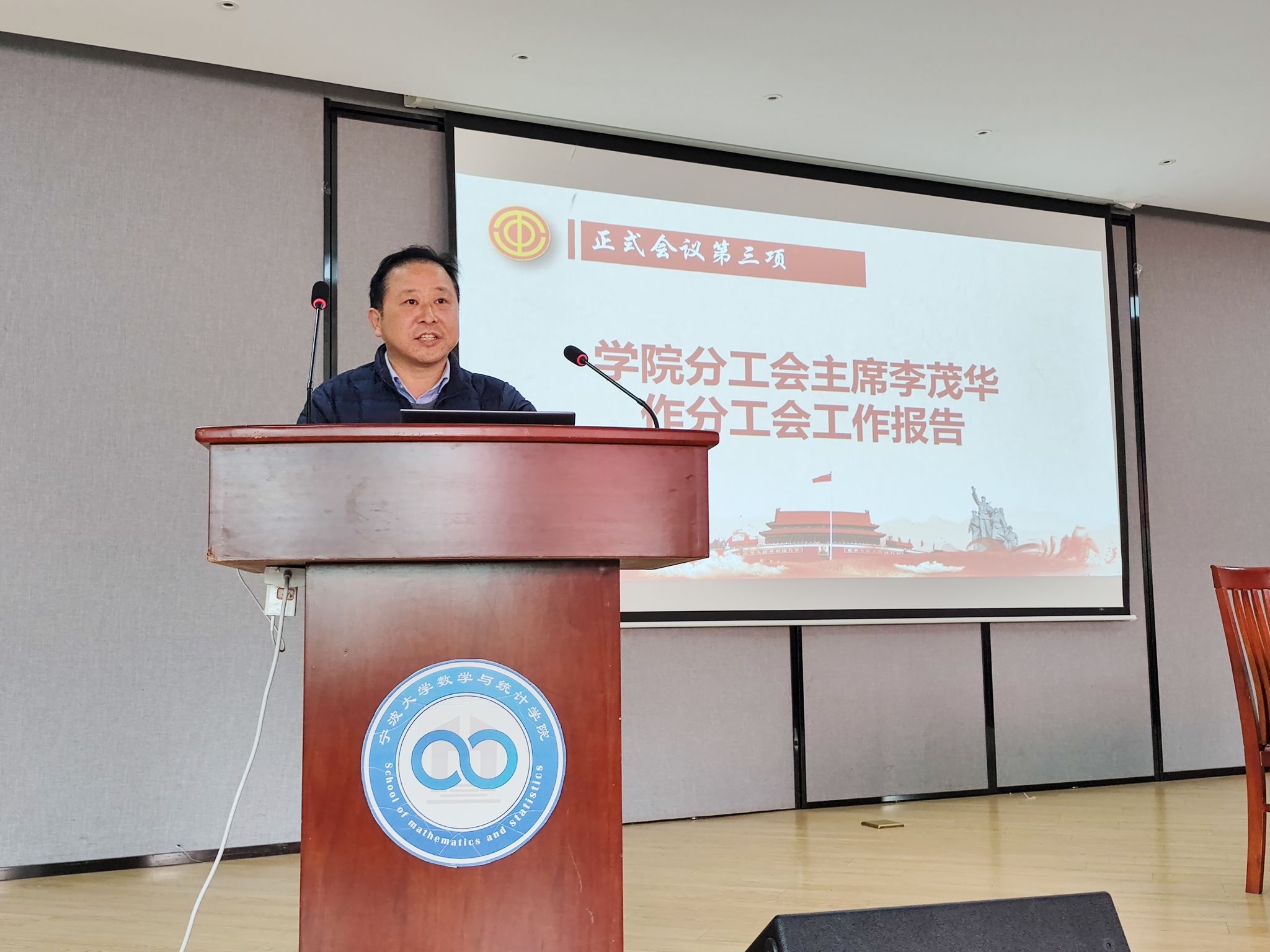 分工会按照工作计划,并报请校工会批准,在学院113报告厅召开学院第二届第二次教职工暨工会会员代表大会。本次双代会应到人数37人,实到35人,符合法定人数。会议全程由书记霍妍主持。