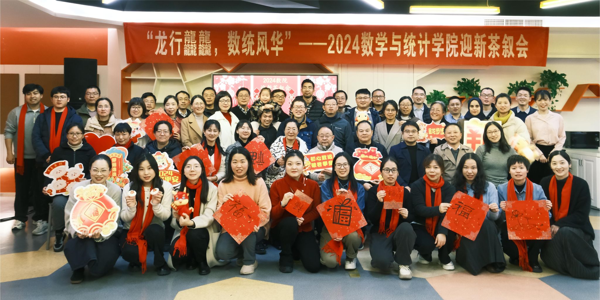 “龙行龘龘,数统风华”2024年迎新茶叙会在学院教工之家成功举办。学院领导、各系部门教师和校友会的众多成员欢聚一堂喜迎新年。