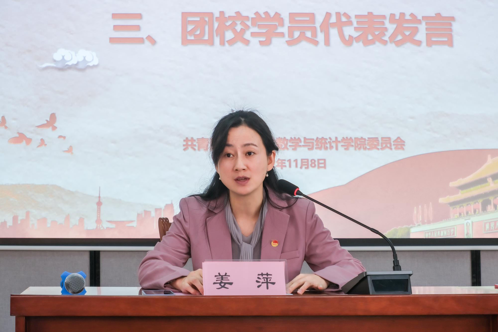 最后,党委副书记姜萍老师对团校学员们提出了三点期望:一是希望同学们明确任务,提高政治站位;二是希望同学们知行合一,理论联系实际;三是希望同学们履职尽责,努力做好表率。她强调,同学们要牢记习近平总书记在二十大报告中对当代中国青年的嘱托,围绕学校潜心立德树人、执着攻关创新的核心任务,在广阔的舞台上施展自己的才干,让青春在全面建设社会主义现代化国家的火热实践中绽放绚丽之花。