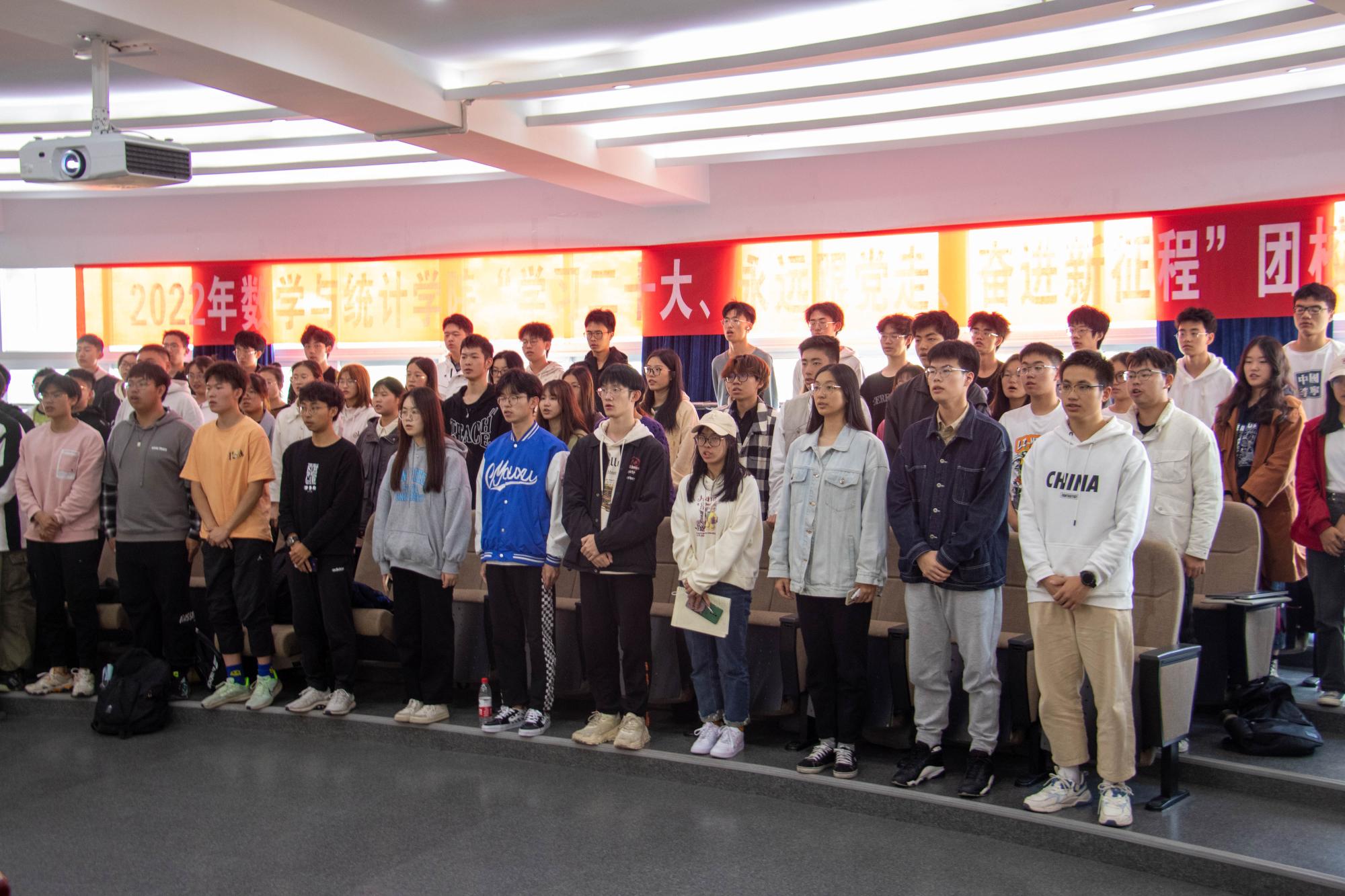 开班仪式在庄严的国歌声中拉开序幕,首先团校负责人孔梦莹同学从请假制度、考勤制度、结业要求、优秀学员的评选方法、结业综合考试成绩等方面说明团校纪律,解读团校手册,明确了团校学习的相关要求.之后团校学员代表陈梦莹同学讲述了自己过去一年的团委工作经历,表达了对团校培训的憧憬。她表示学生干部肩负着新时代的责任重担,应树立伟大目标,为实现中华民族的伟大复兴积蓄后备力量。并呼吁同学们在培训期间努力学习,遵守纪律,坚定理想信念,练就过硬本领。