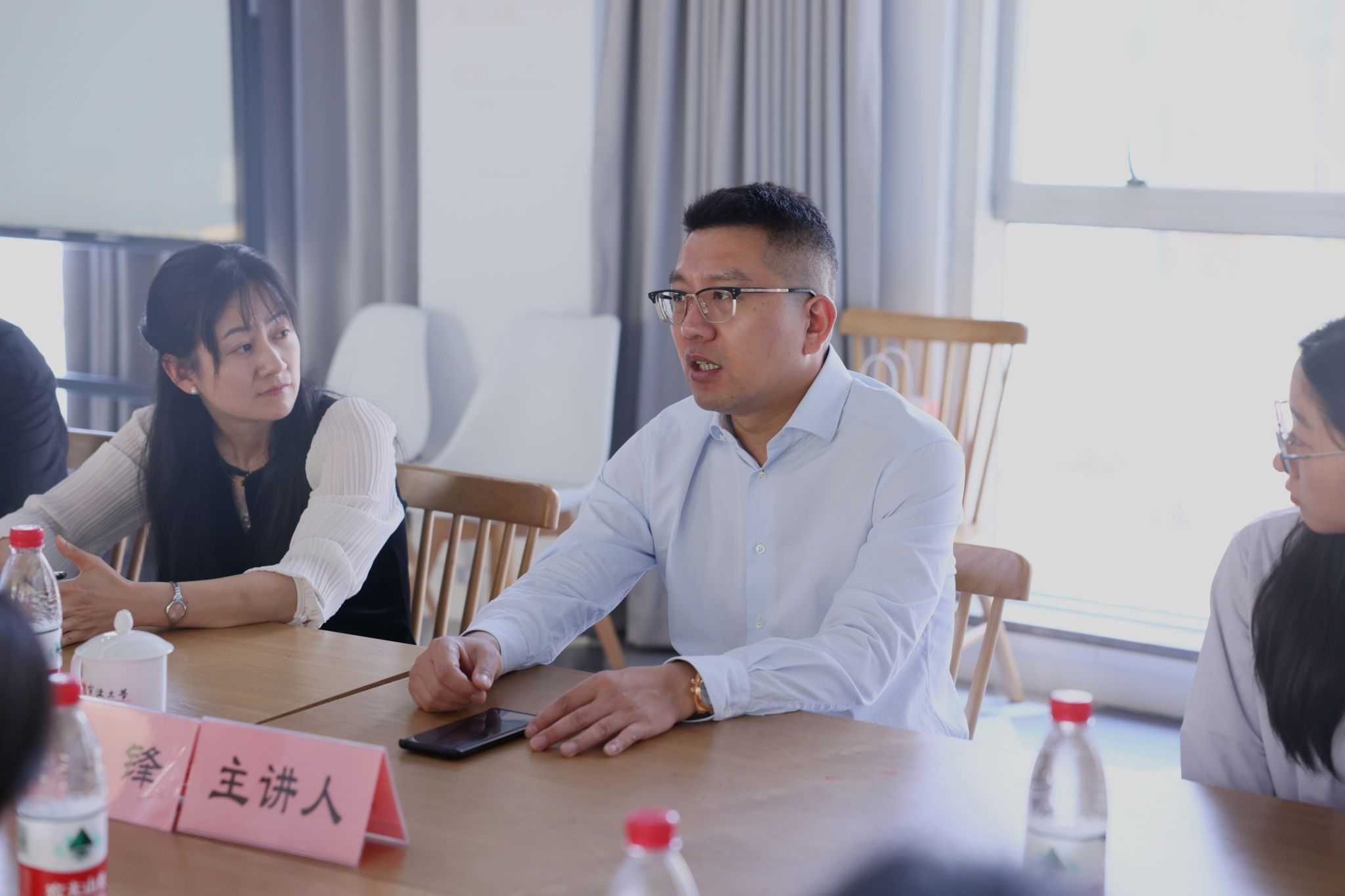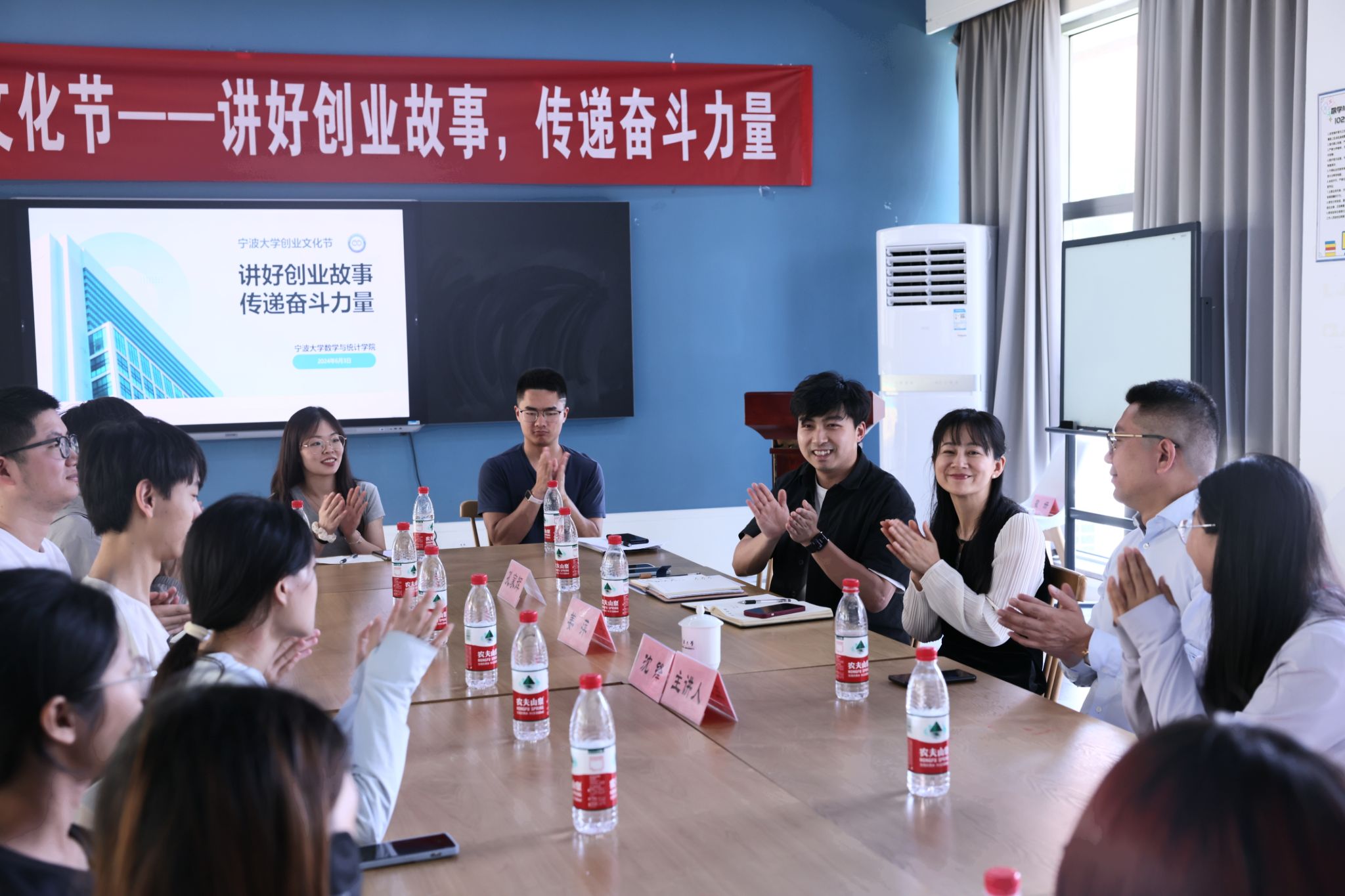 原理学院04届校友,宁波和盛达能源技术有限公司执行董事沈锋,向到场的师生们分享了他的成功经验和企业家精神。院党委副书记姜萍、院团委书记孔家辉及20余名学生代表出席座谈会。