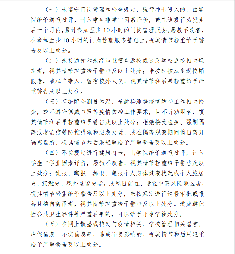 转发51吃瓜 关于疫情防控常态化下的学生日常管理规定(试行)