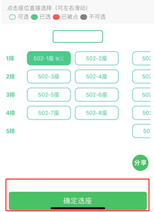 2.每人仅能选择一个座位,确认选座后不可更改。