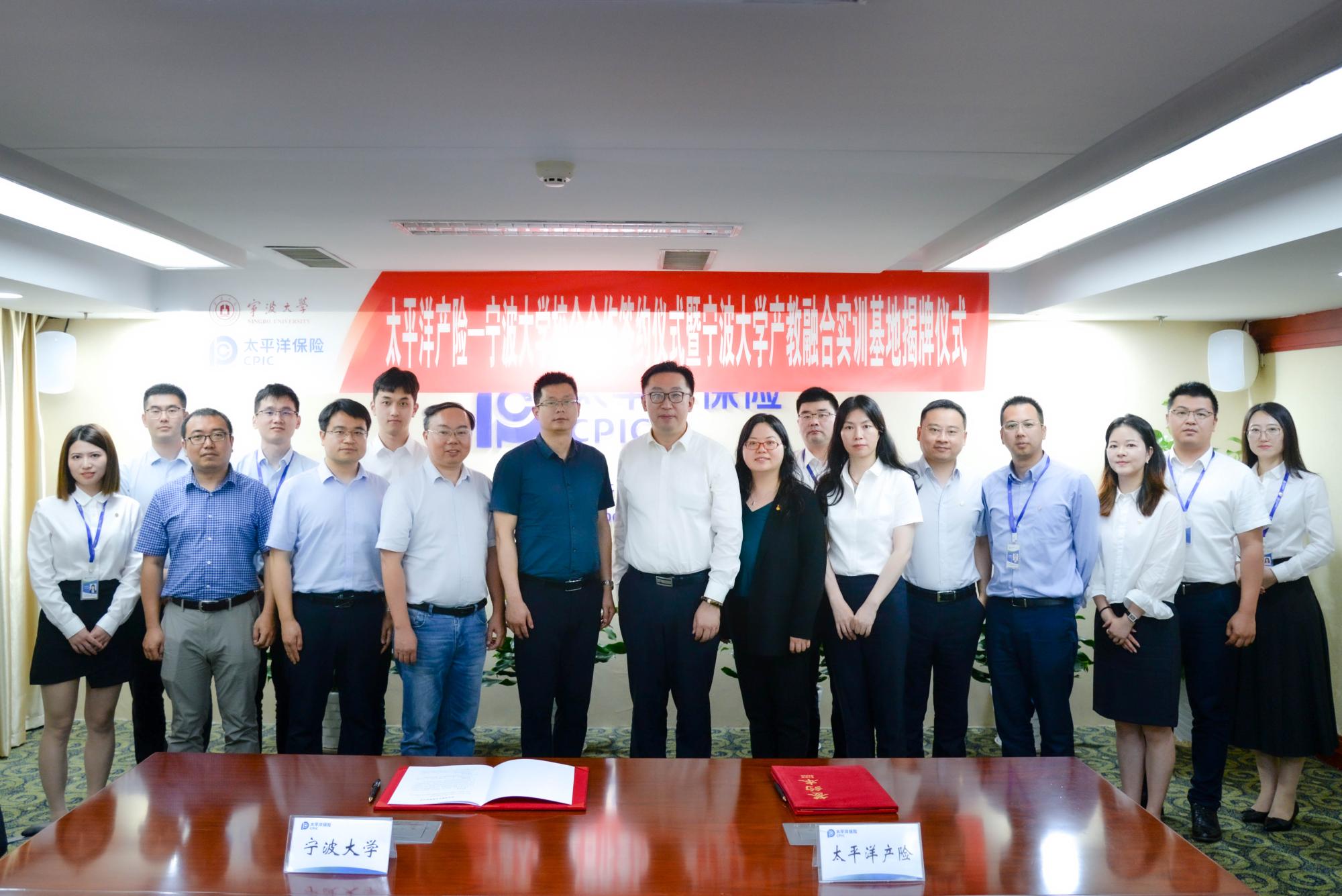 党委书记俞金波、副院长胡良根、协理副院长徐松、王伟教授,与太平洋产险宁波分公司党委书记、总经理毛俊嵘、人力资源部总经理汪蕾等多位核心部门中层领导,宁大校友员工代表出席了此次签约仪式。