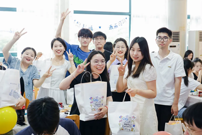 欢送会开场前,在会场入口的画布一角,毕业生同学们正用手中的笔轻轻滑动,留下了对未来的期许和对友情的珍视。画布上密布的签名和印记,宛如一小块一小块的时光碎片,共同拼凑出一幅独一无二的回忆画卷。