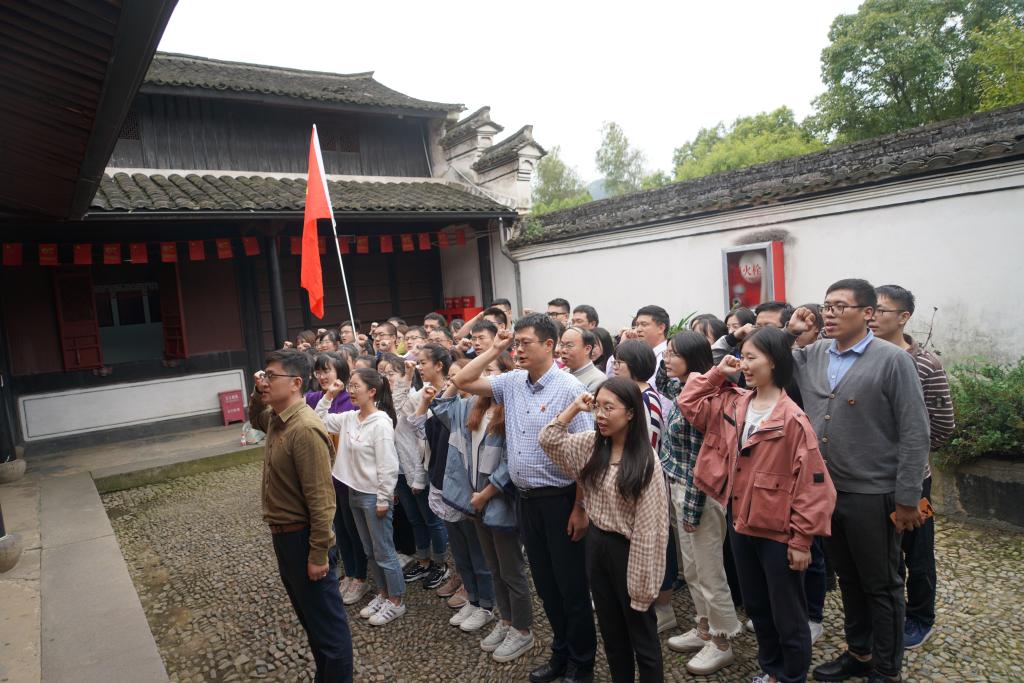 自“不忘初心、牢记使命”主题教育开展以来,学院党委聚焦主题主线,坚持学做结合、查改贯通,推动主题教育落地见效,实现主题教育高标准高质量推进。10月16日,学院党委组织师生党员50余人到余姚梁弄镇浙东抗日根据地旧址群、横坎头村开展现场教学,接受红色教育。