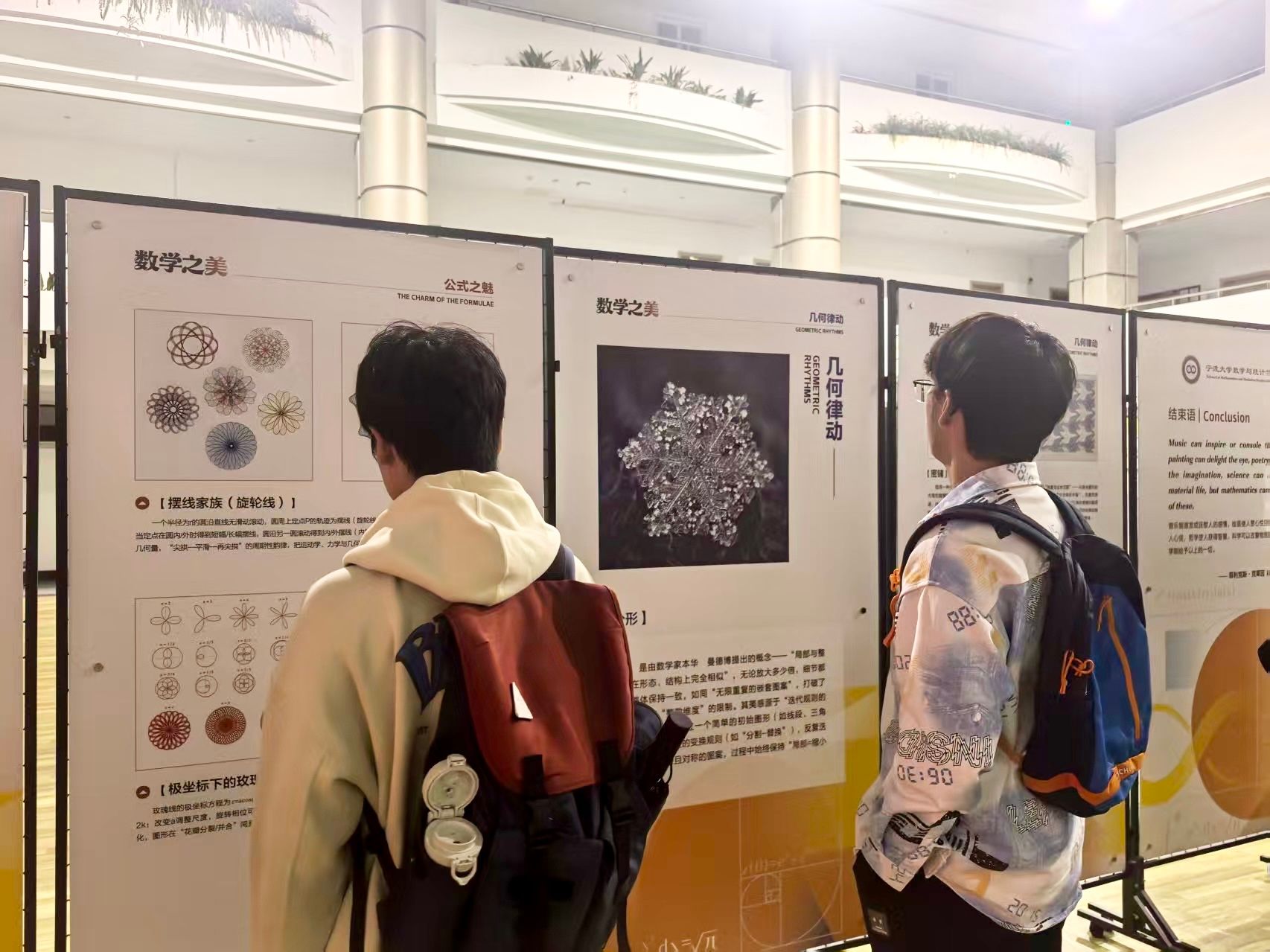 党委牵头,师生共同参与内容撰写与视觉设计,不少校友专程回校观展,营造了热烈的校内外互动氛围。学院相关负责人表示,希望通过展览让更多人认识到,数学并非冰冷的公式,而是渗透于生活各处的美学载体。