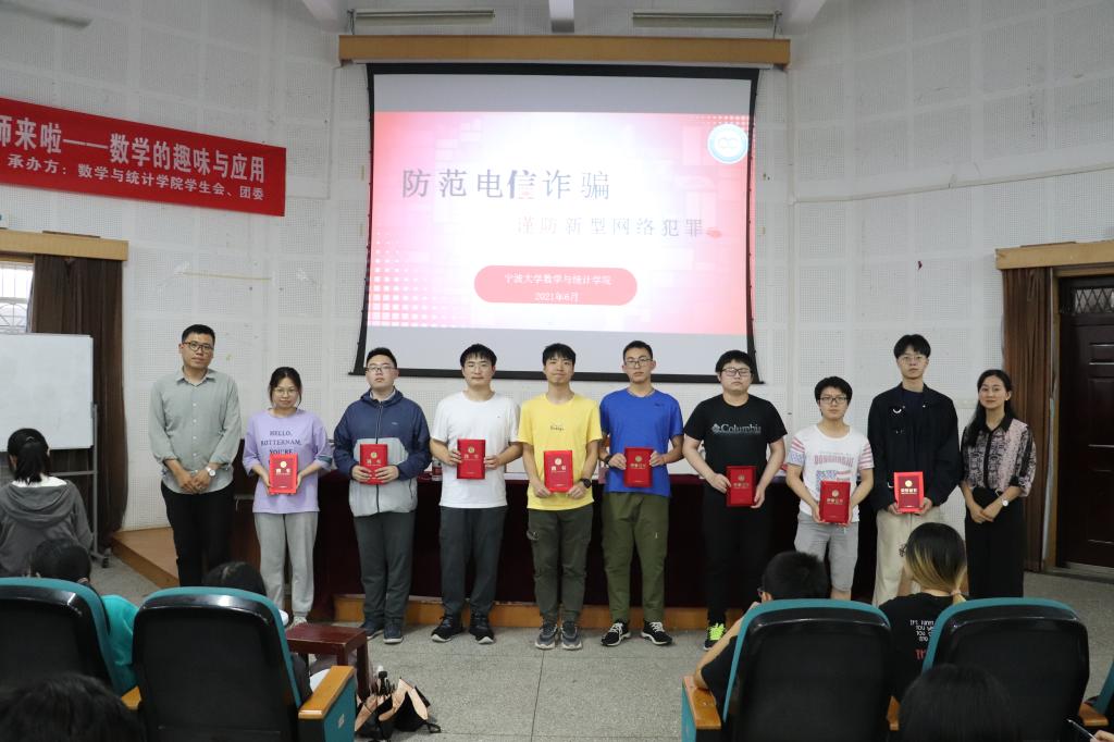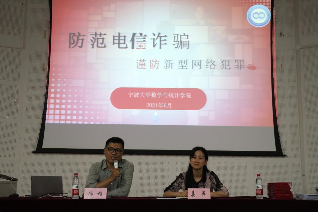在龙赛报告厅为数院全体本科生开展反诈防骗专题培训教育,多措并举强化反诈意识和能力,学院党委副书记姜萍出席,讲座由学工办主任冯程主持。