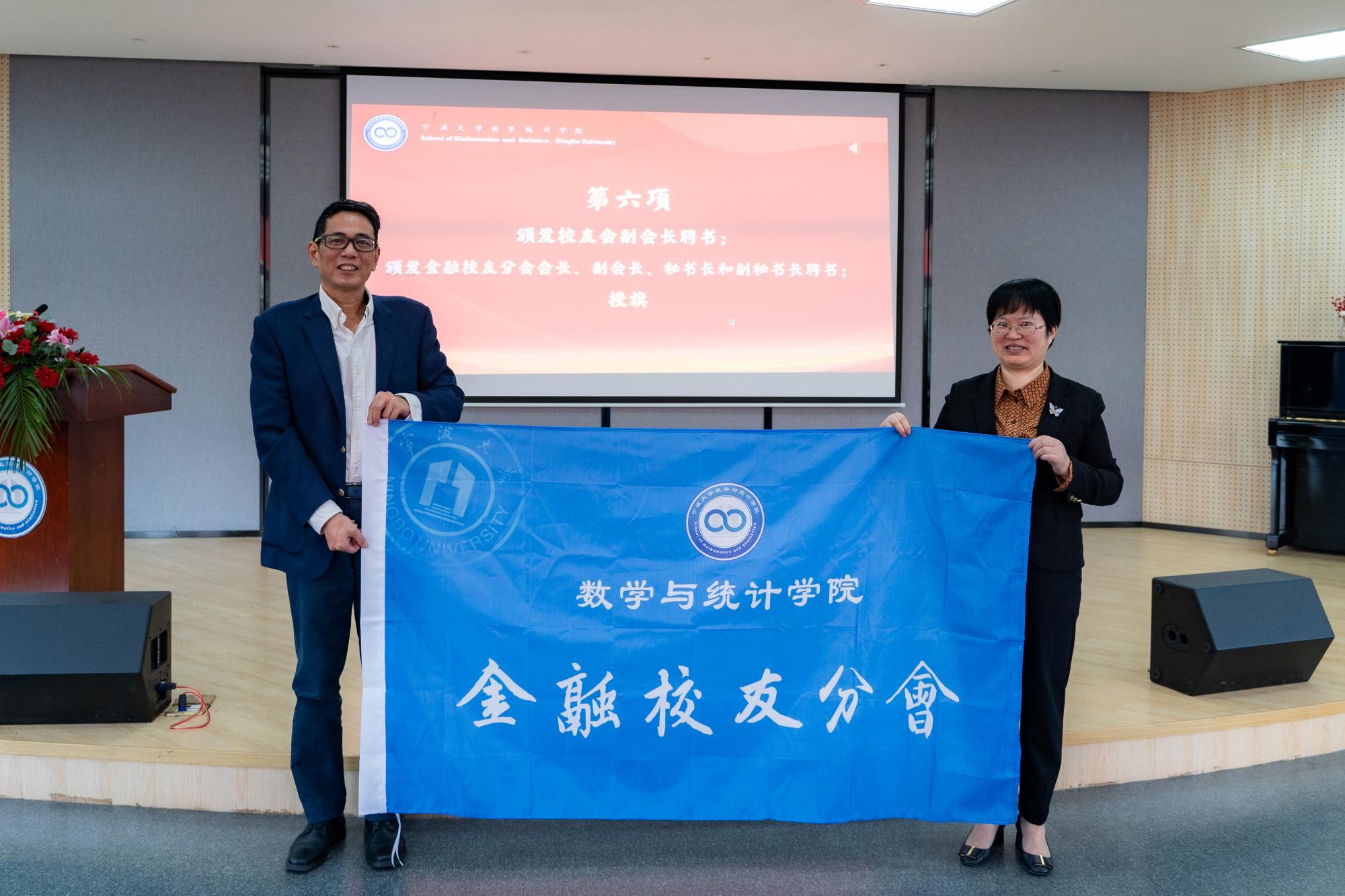 (学院校友会会长严正为金融校友分会组织机构成员颁发聘书)