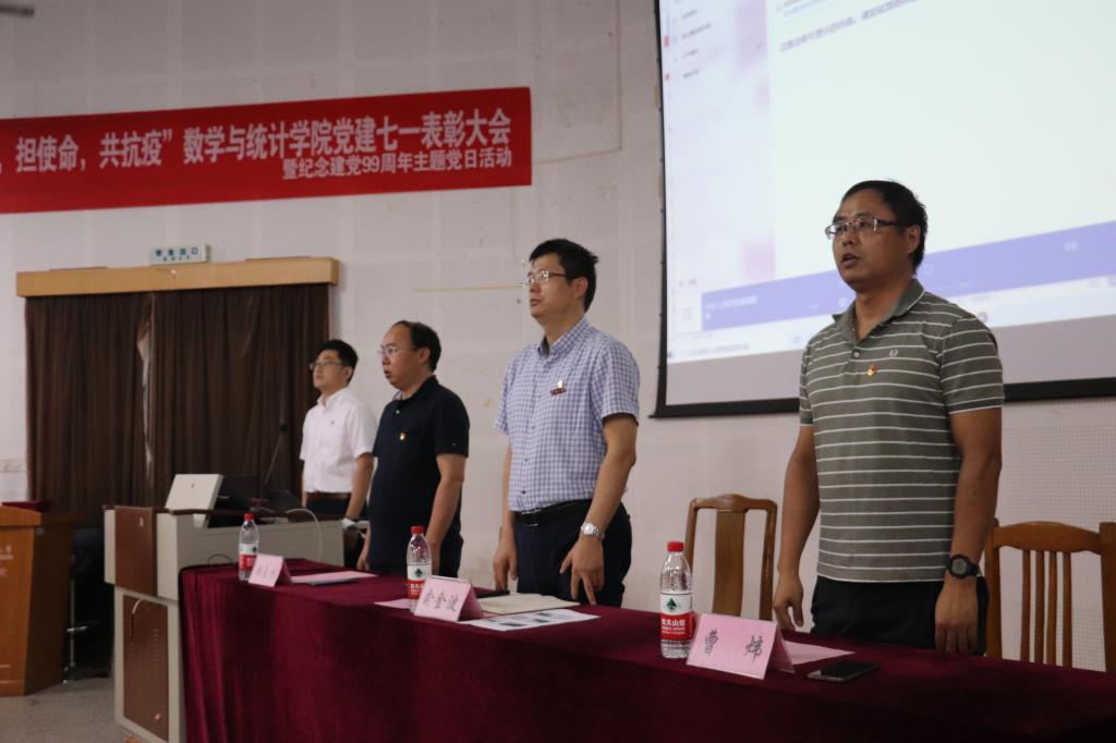 “七一”表彰大会暨纪念建党99周年主题党日活动在龙赛理科楼报告厅隆重召开。党委书记俞金波、副院长曹炜、副院长胡良根出席会议。大会由党委委员、团委书记张宾主持。