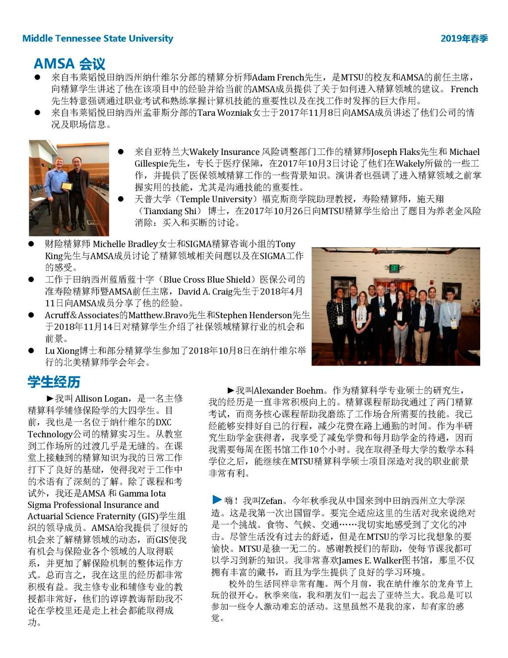 MTSU精算专业2019春季项目简报