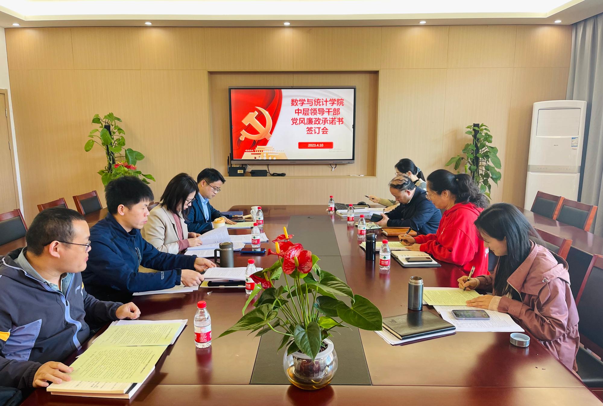 在党员之家218会议室举行中层领导干部党风廉政承诺书签订会。学院班子成员参加,会议由院党委书记霍妍主持。